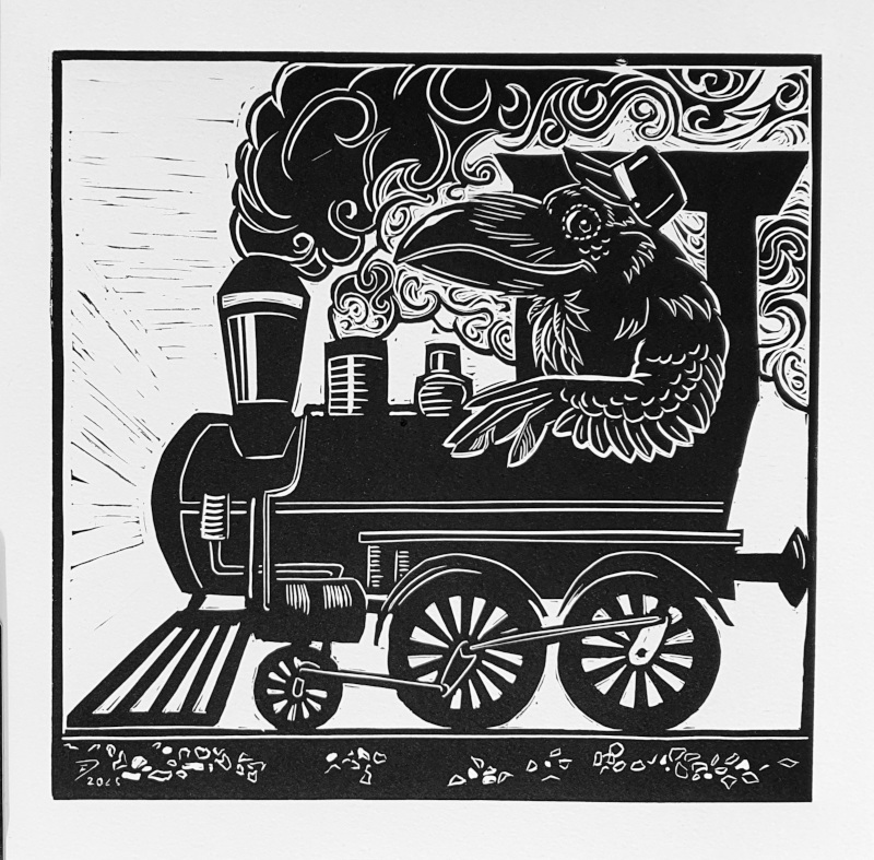 Zugvogel: Lokvogel - Linoldruck
